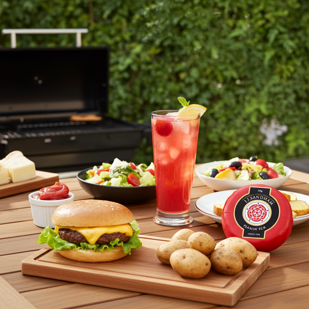Handcrafted in Lancashire by expert cheesemakers JJ Sandham, this Flamin Eck Cheddar Cheese combines traditional cheesemaking methods with adventurous flavour innovation. The result is a cheese that’s both rich and punchy, offering a mouth-watering balance of spice and savoury depth.
