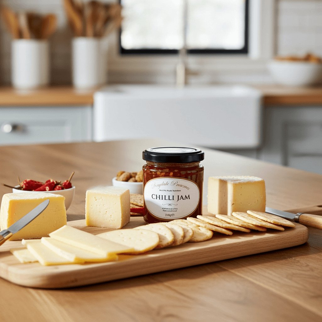 The gentle spice works particularly well with crumbly Lancashire cheese, mature cheddar, or creamy blue cheese, where the sweetness complements the saltiness of the cheese while the chilli adds a warming kick. It’s also delicious spread in sandwiches, served alongside grilled meats, or spooned over cheese on toast for an easy flavour boost.