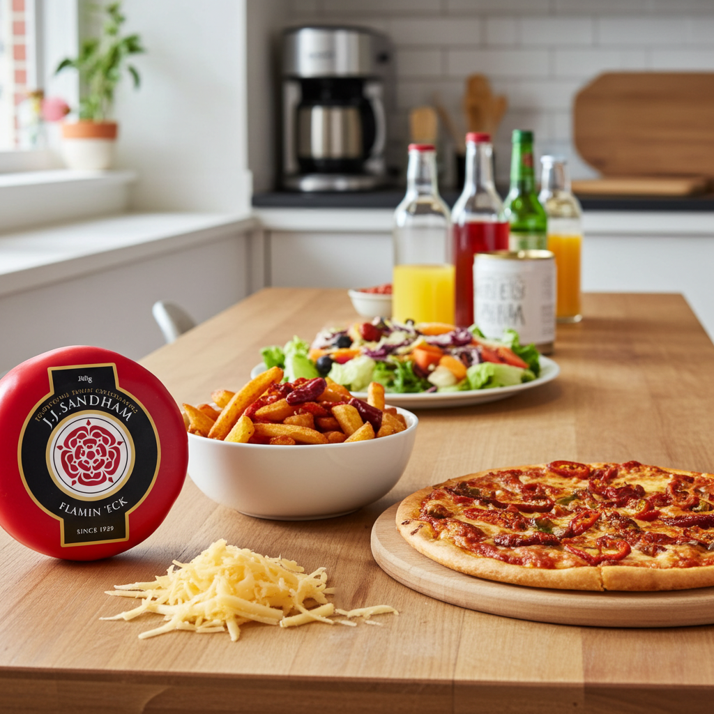 Handcrafted in Lancashire by expert cheesemakers JJ Sandham, this Flamin Eck Cheddar Cheese combines traditional cheesemaking methods with adventurous flavour innovation. The result is a cheese that’s both rich and punchy, offering a mouth-watering balance of spice and savoury depth.